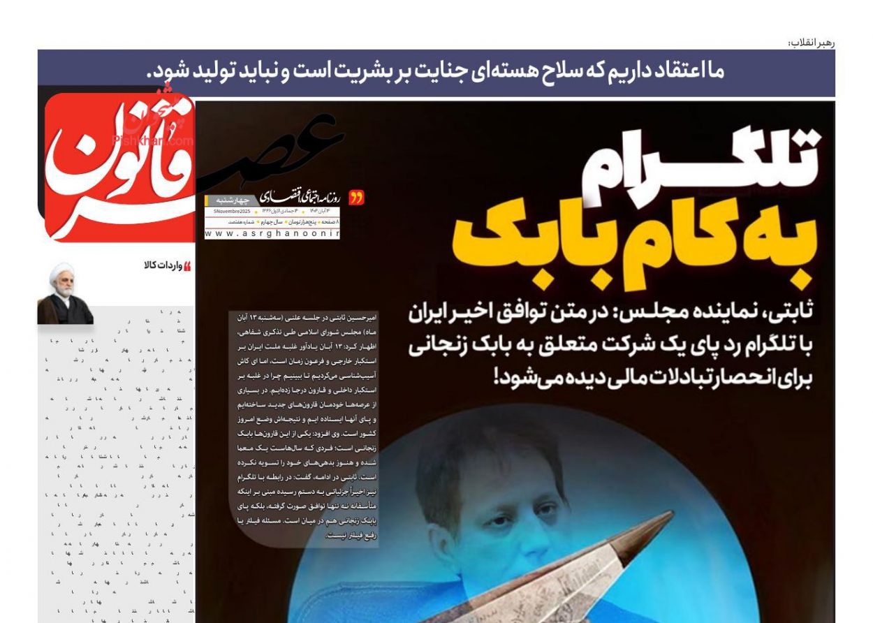 عصر قانون ، چهارشنبه ۱۴ آبان