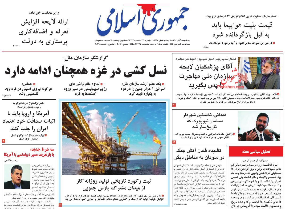 جمهوری اسلامی ، پنجشنبه ۱۵ آبان