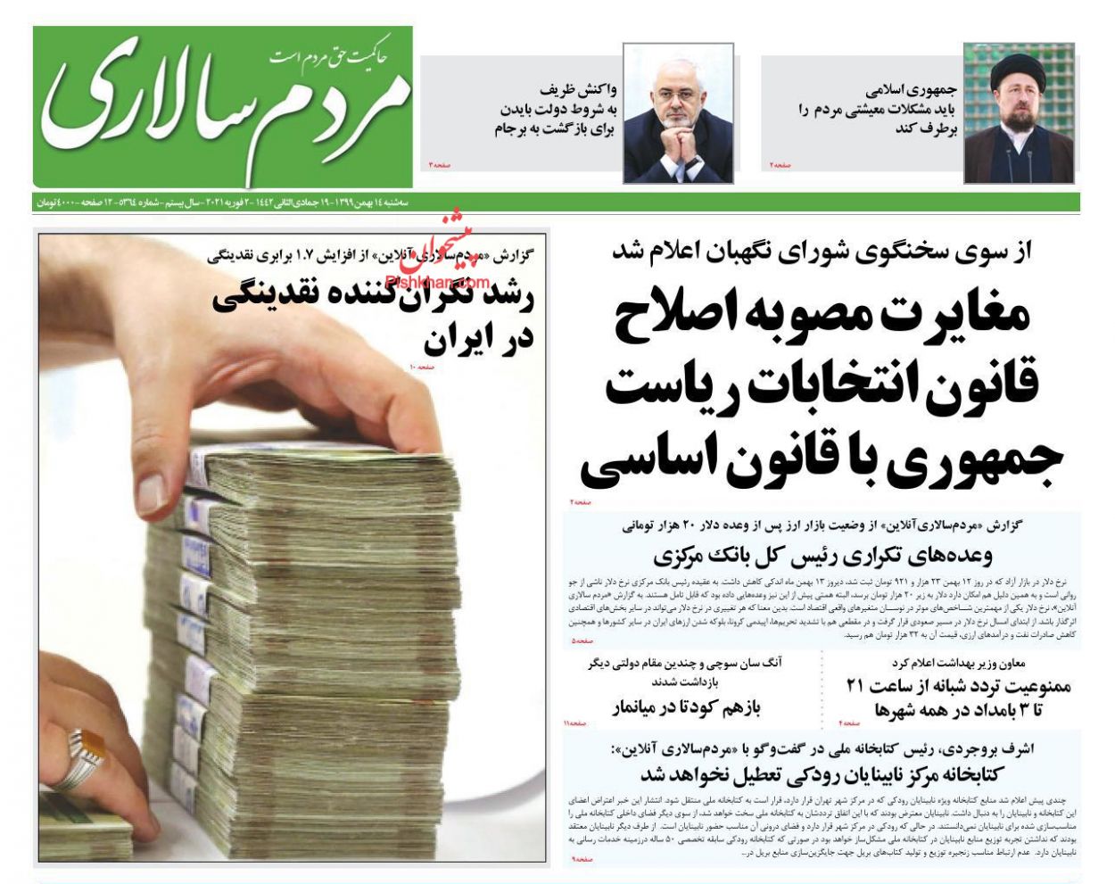 مردم سالاری ، سهشنبه ۱۴ بهمن