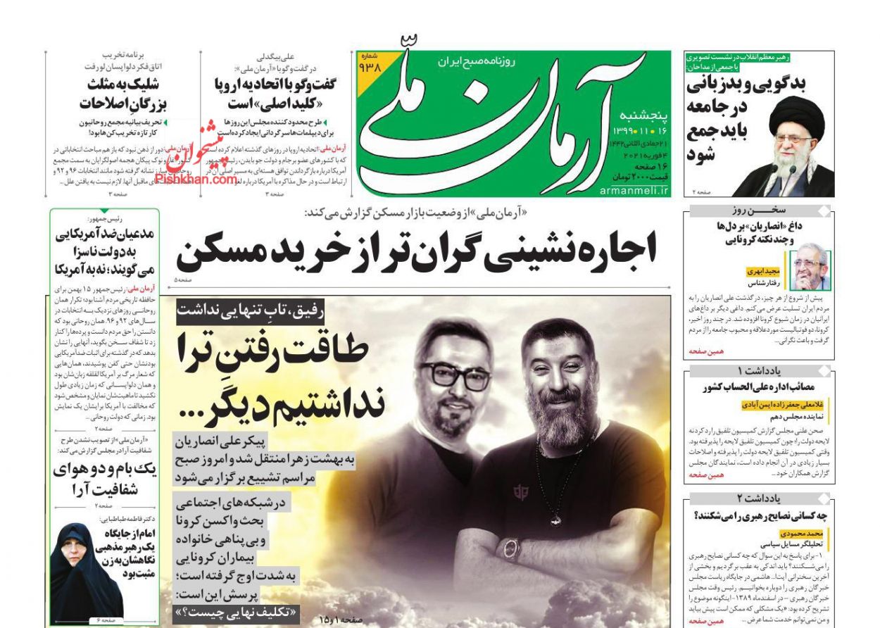 آرمان ملی ، پنجشنبه ۱۶ بهمن