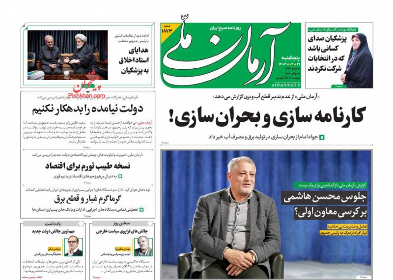 آرمان ملی ، پنجشنبه ۲۱ تیر