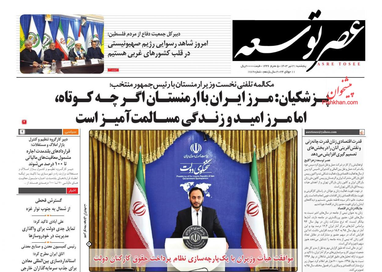عصر توسعه ، پنجشنبه ۲۱ تیر