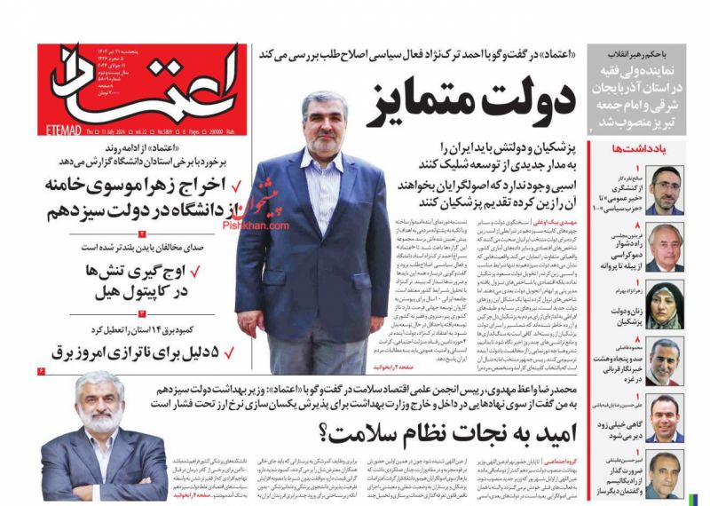 اعتماد ، پنجشنبه ۲۱ تیر