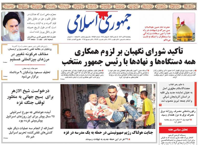 جمهوری اسلامی ، پنجشنبه ۲۱ تیر