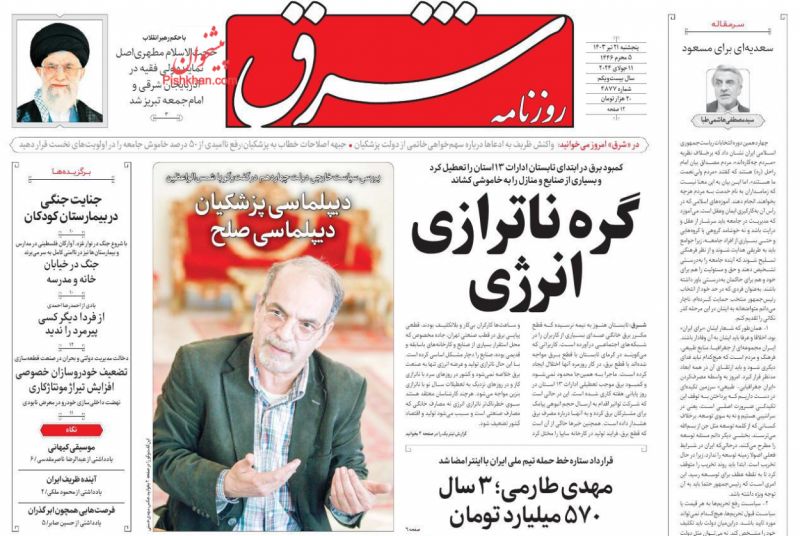 شرق ، پنجشنبه ۲۱ تیر