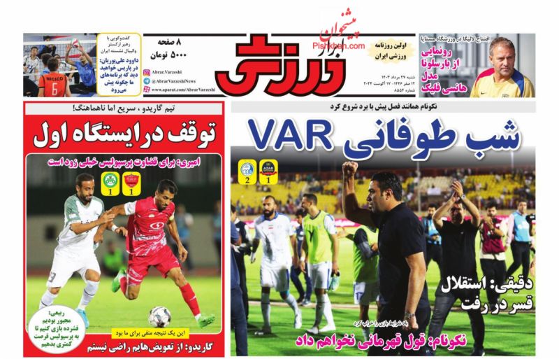 ابرار ورزشى ، شنبه ۲۷ مرداد
