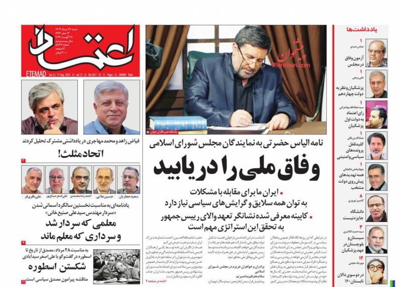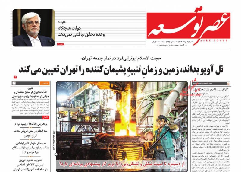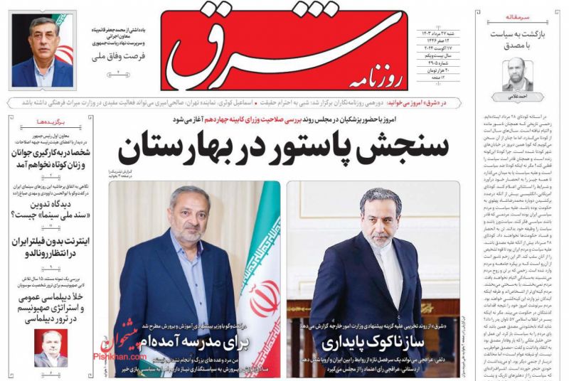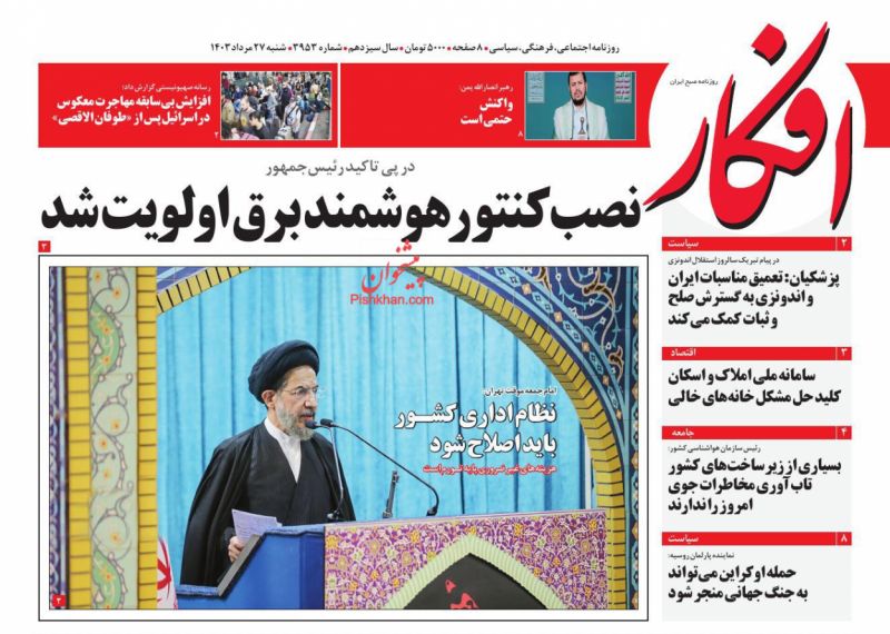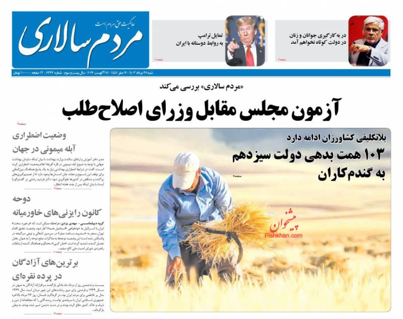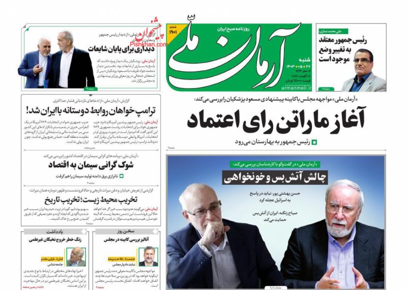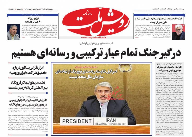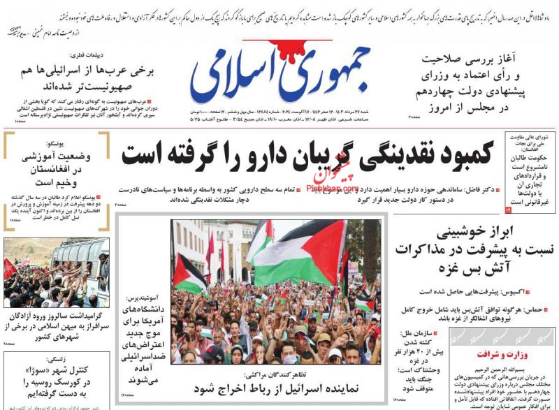 جمهوری اسلامی ، شنبه ۲۷ مرداد