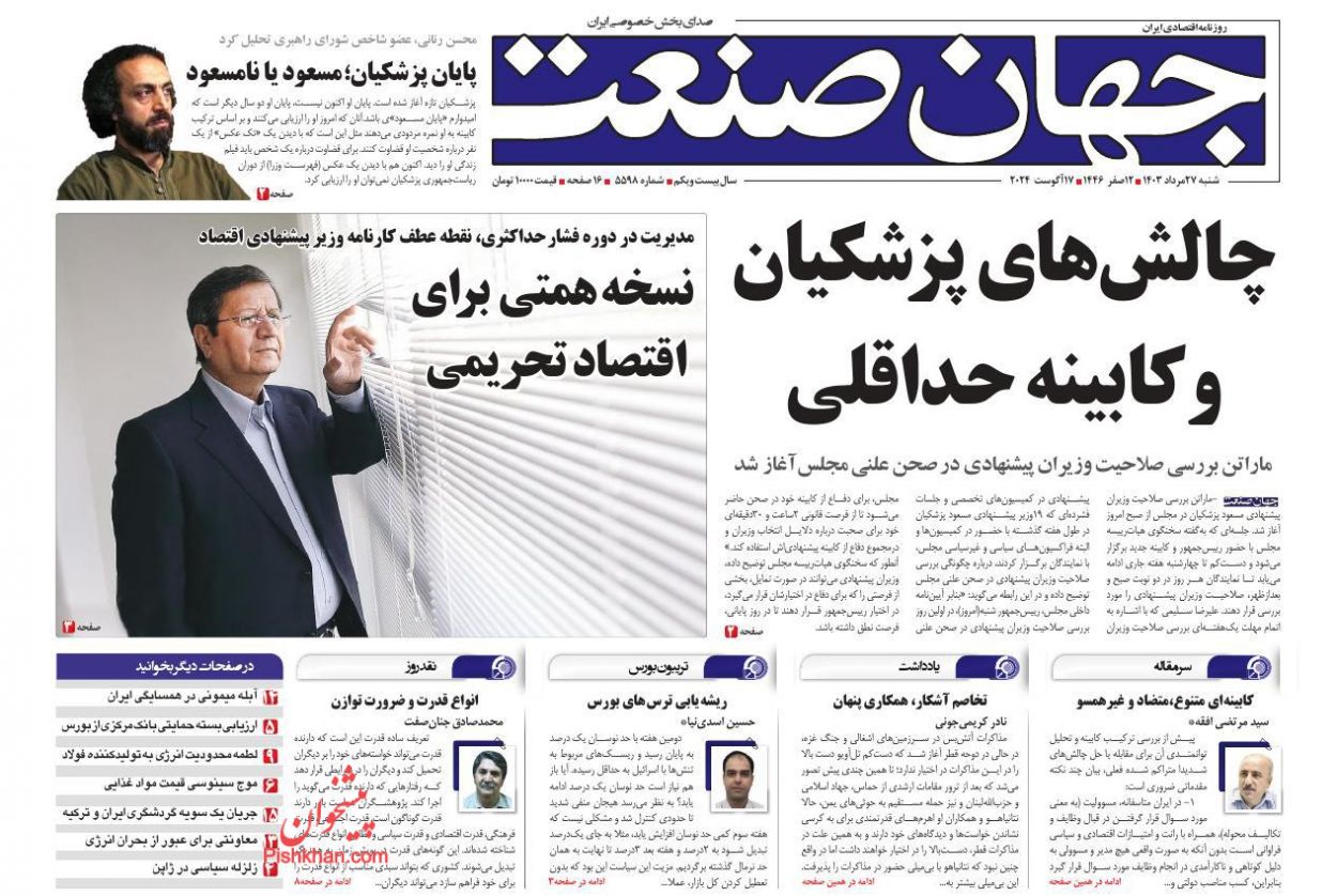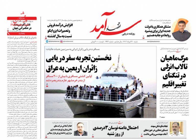 دنیای اقتصاد ، شنبه ۲۷ مرداد