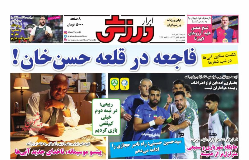 ابرار ورزشى ، شنبه ۲۸ مهر