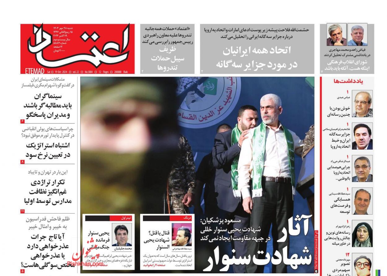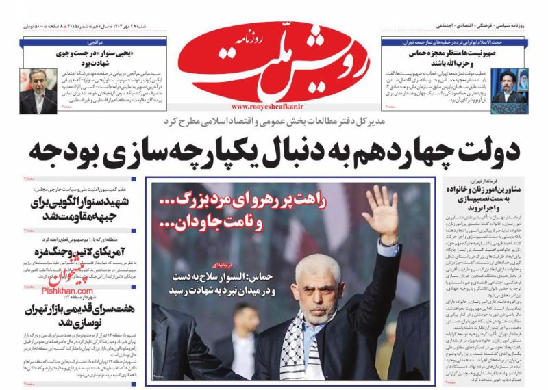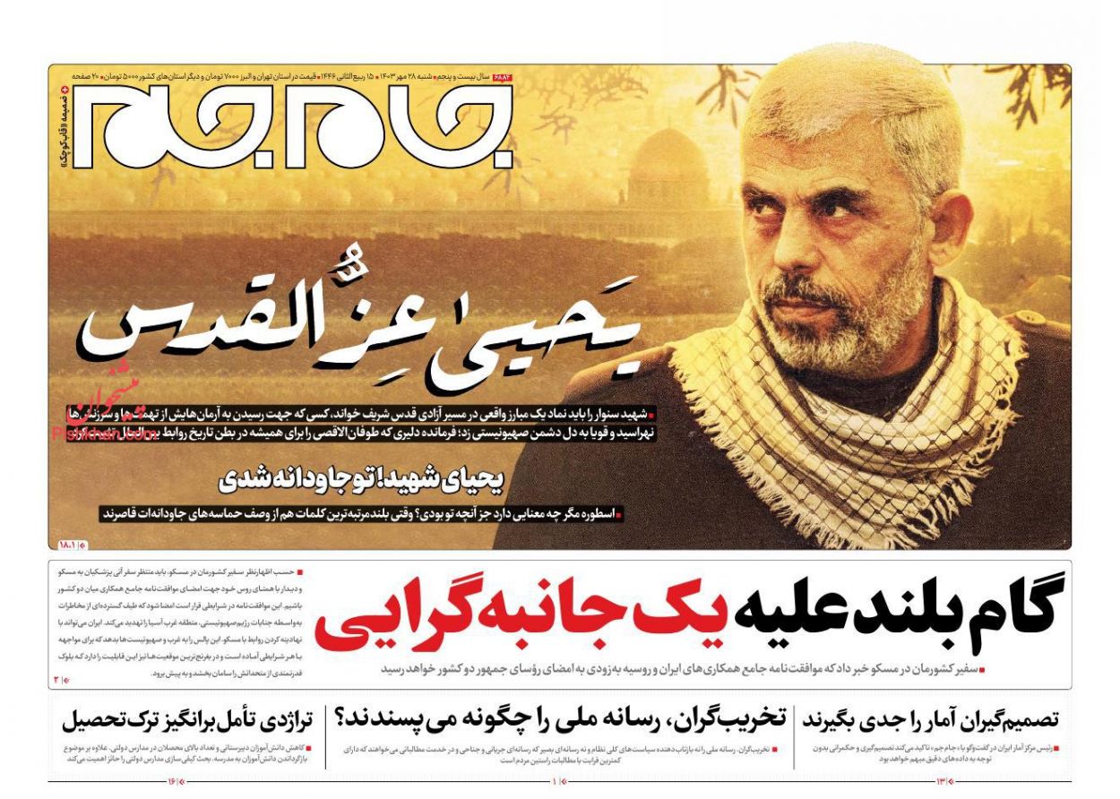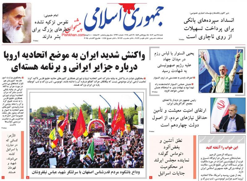 جمهوری اسلامی ، شنبه ۲۸ مهر
