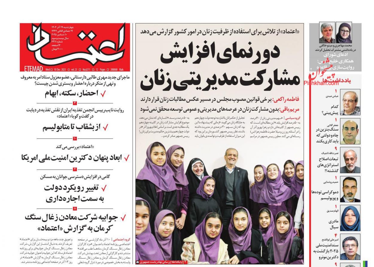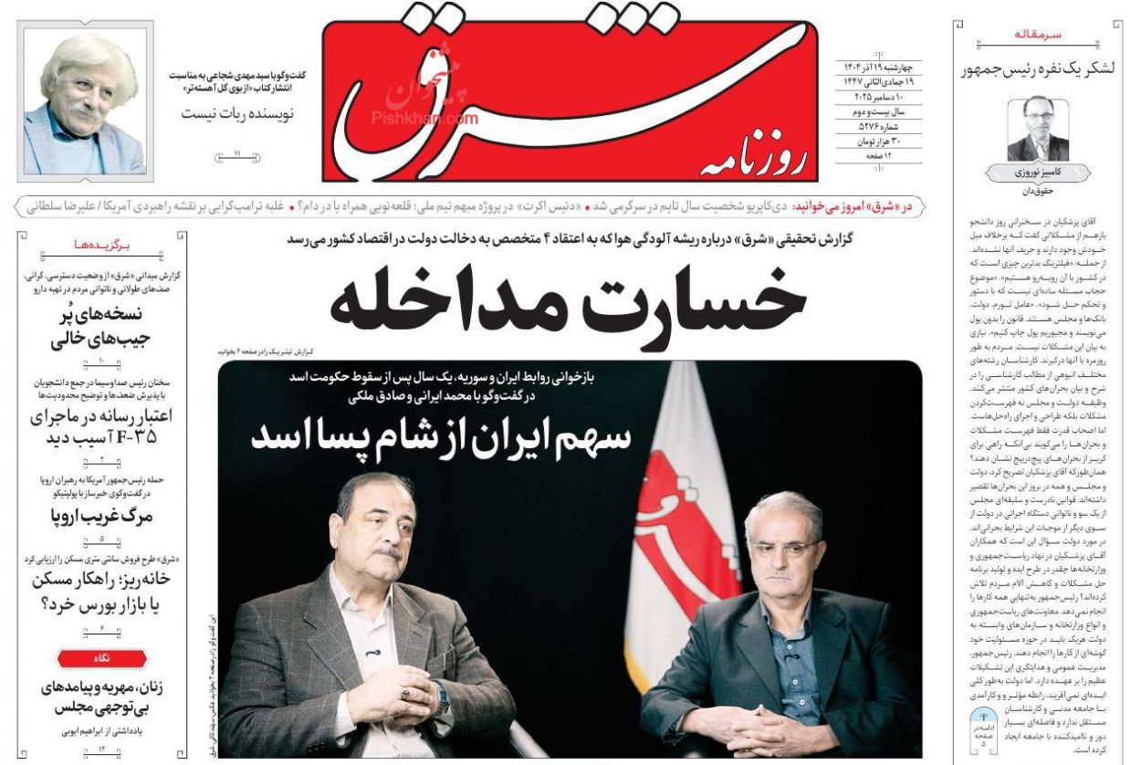 جمهوری اسلامی ، چهارشنبه ۱۹ آذر