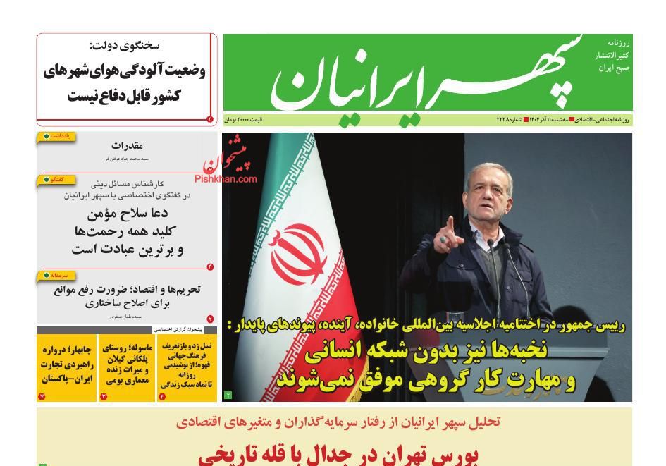 سپهر ایرانیان ، سهشنبه ۱۱ آذر