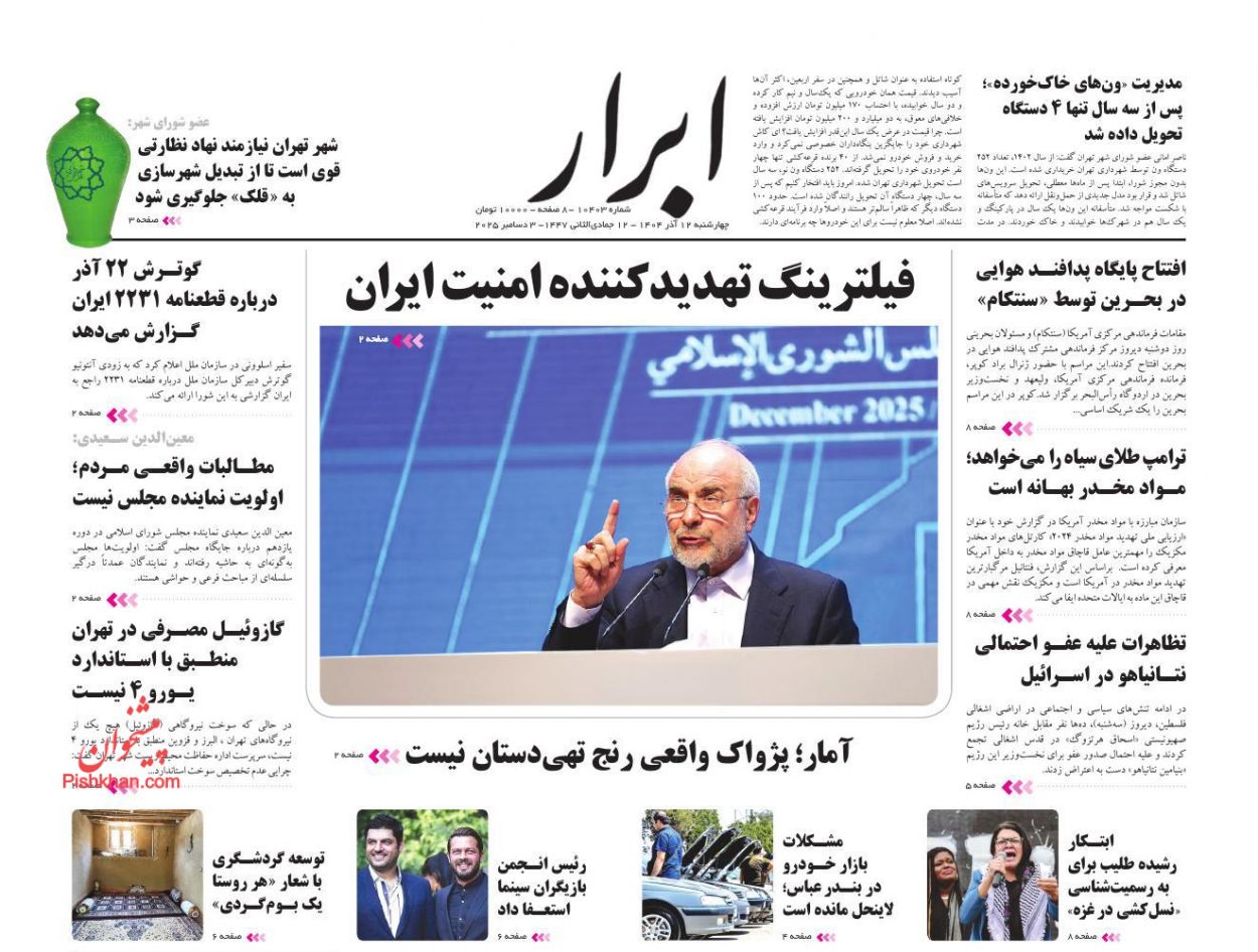 ابرار ، چهارشنبه ۱۲ آذر