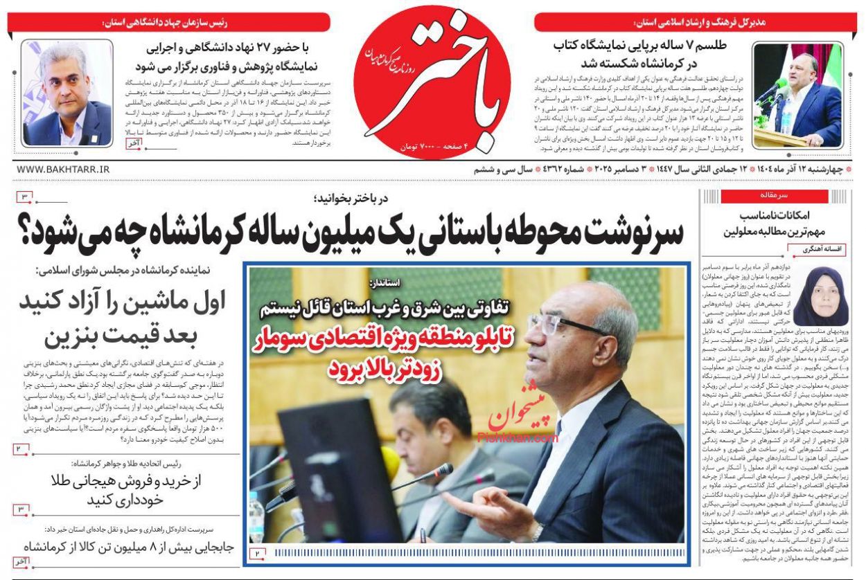 باختر ، چهارشنبه ۱۲ آذر