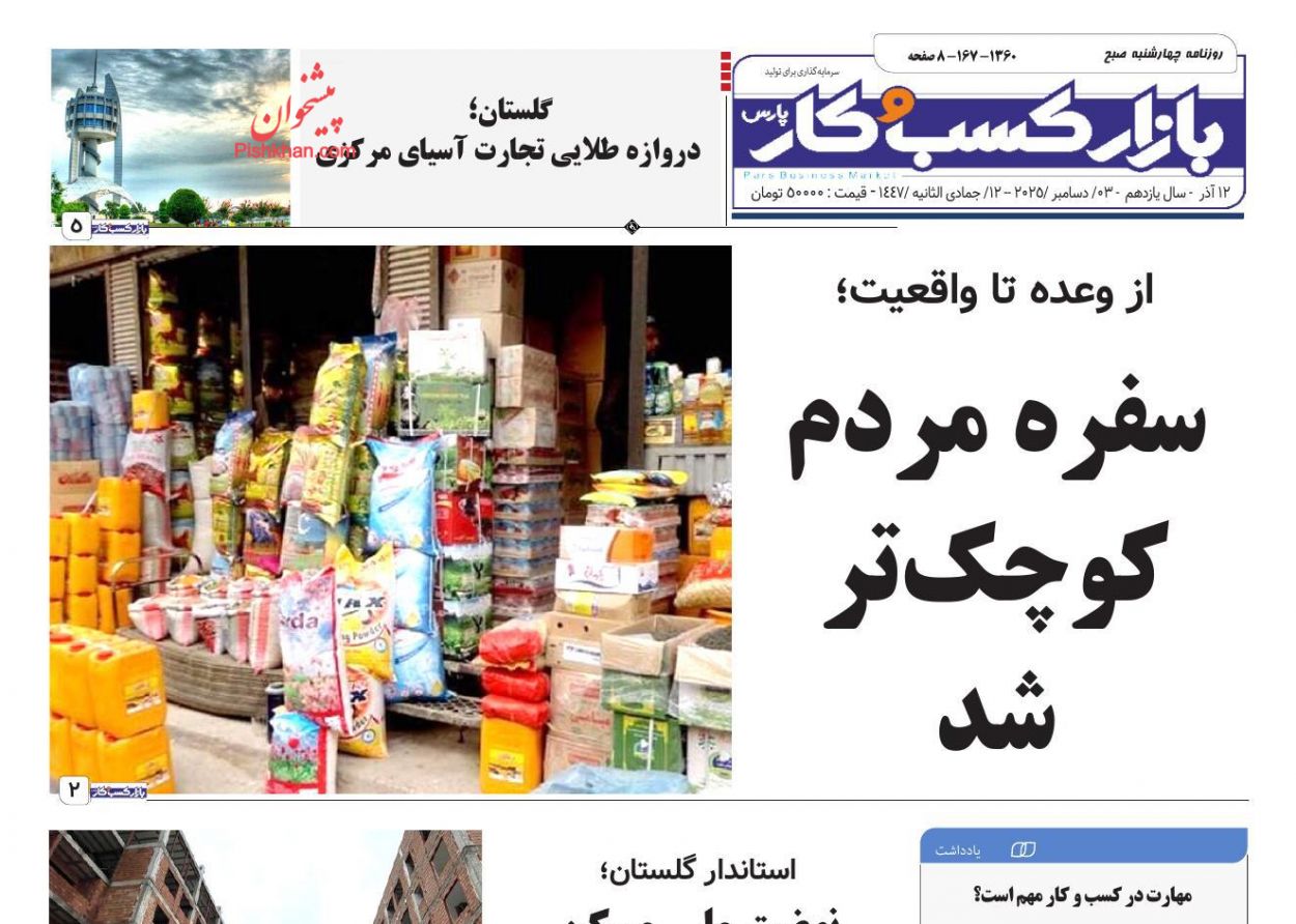 بازار کسب و کار ، چهارشنبه ۱۲ آذر