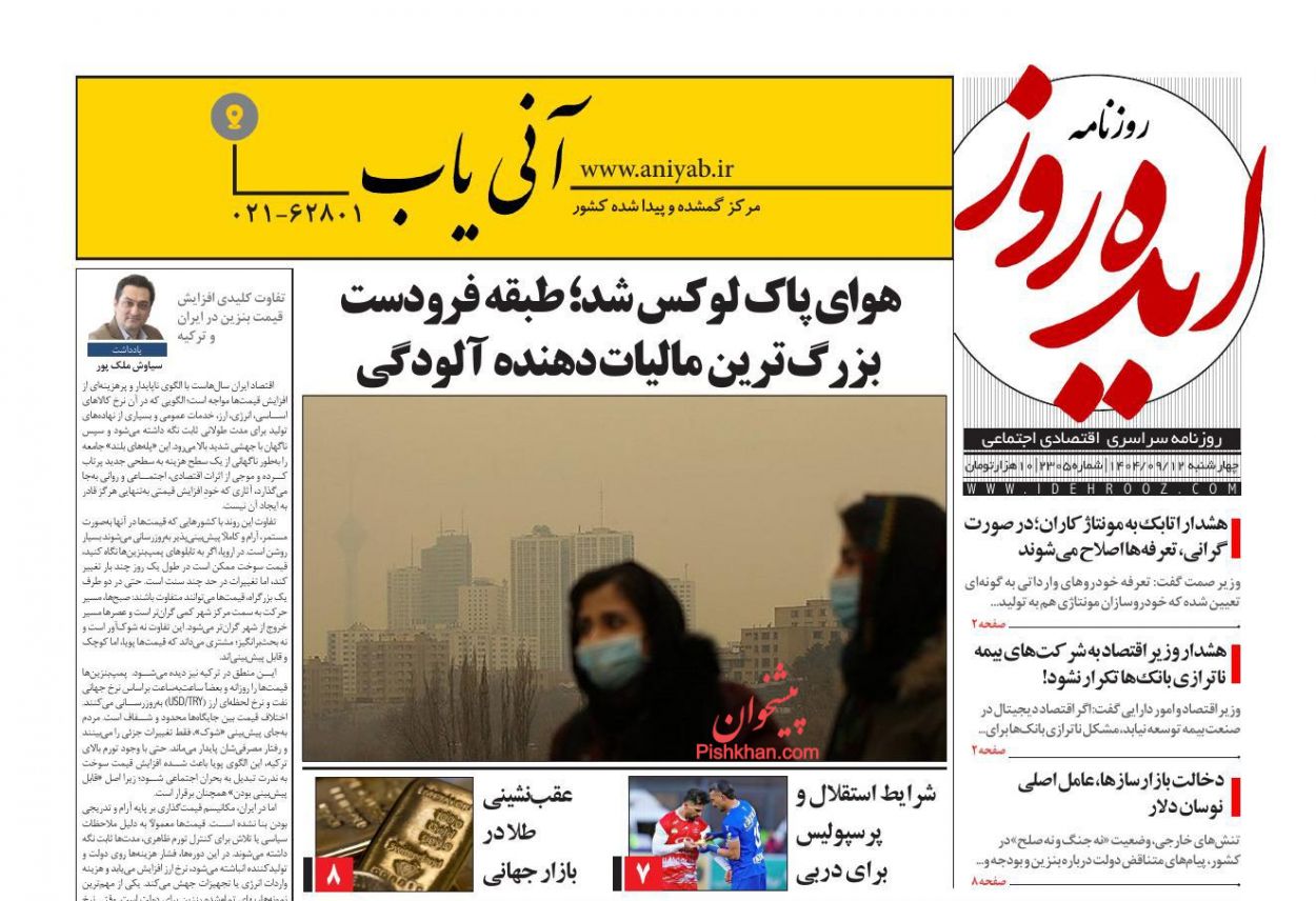 نقش اقتصاد ، چهارشنبه ۱۲ آذر