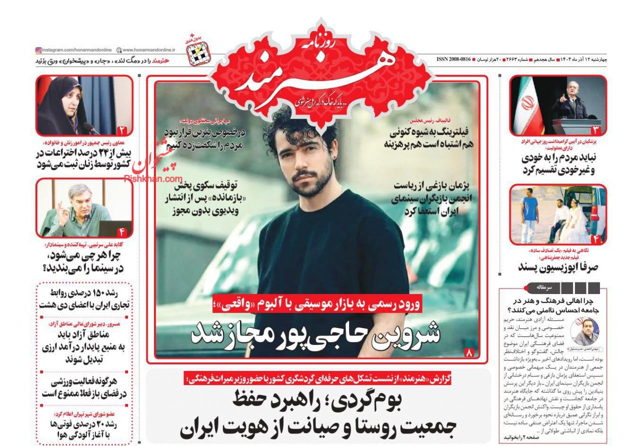 هنرمند ، چهارشنبه ۱۲ آذر