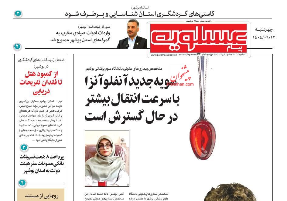 پیام عسلویه ، چهارشنبه ۱۲ آذر