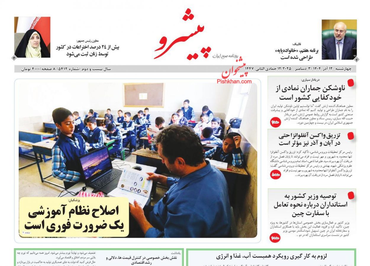 پیشرو ، چهارشنبه ۱۲ آذر