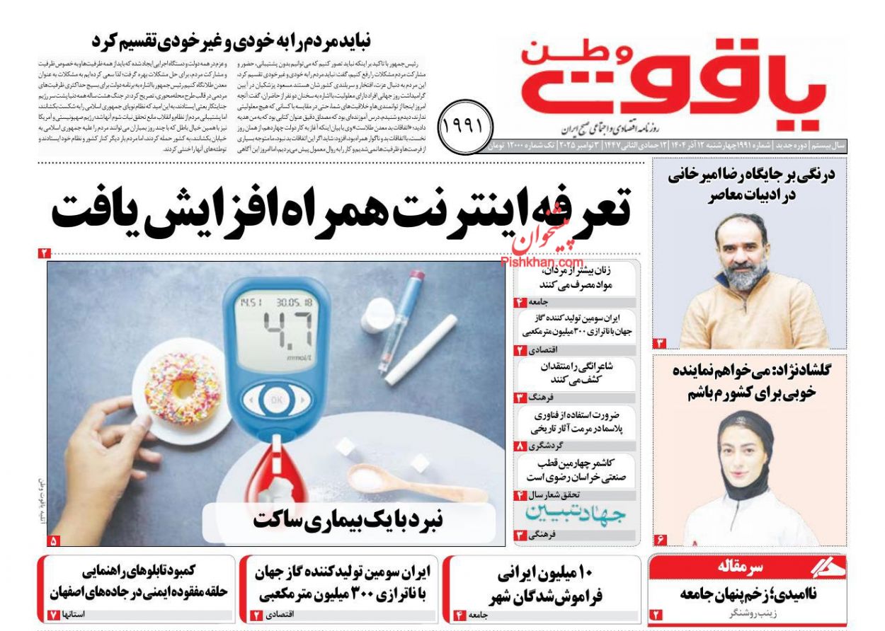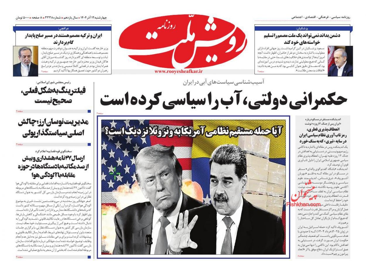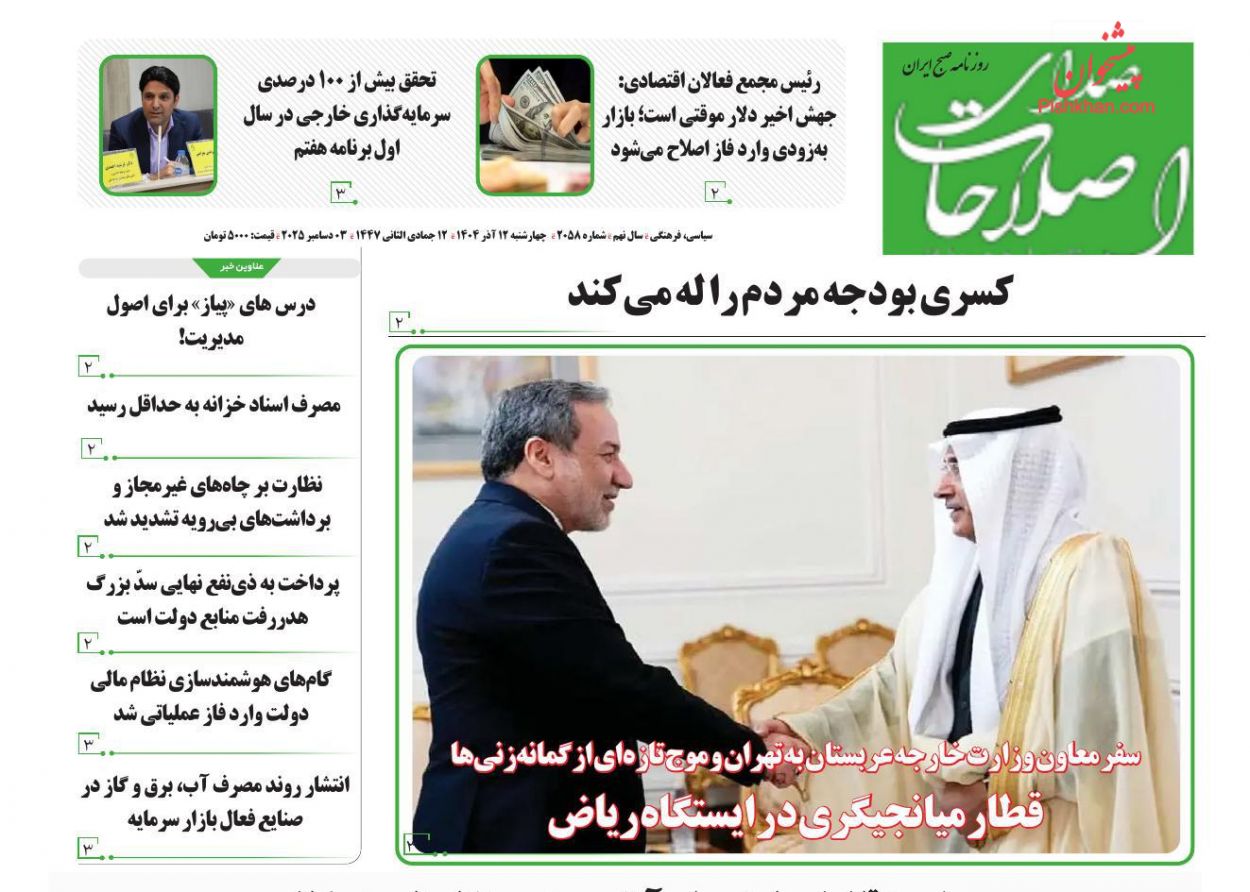 صدای اصلاحات ، چهارشنبه ۱۲ آذر