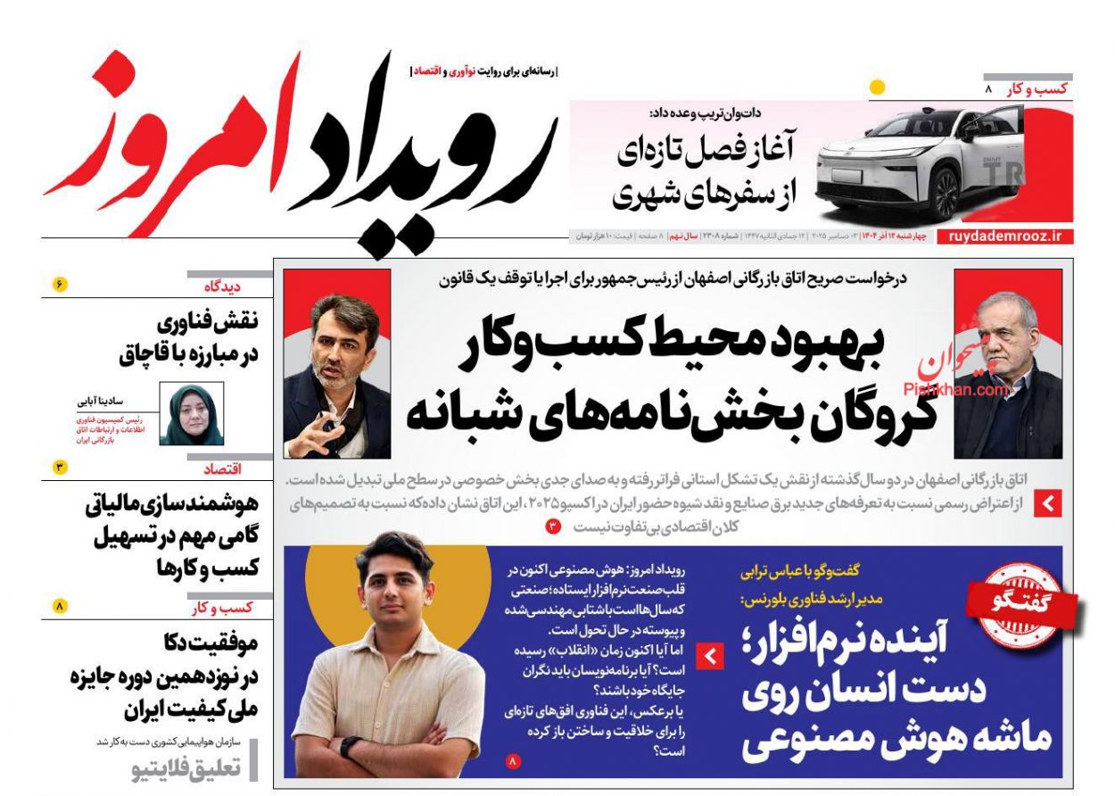 ابرار اقتصادی ، چهارشنبه ۱۲ آذر