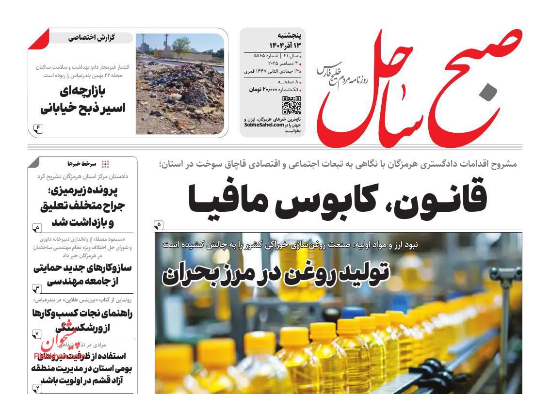 صبح ساحل ، پنجشنبه ۱۳ آذر