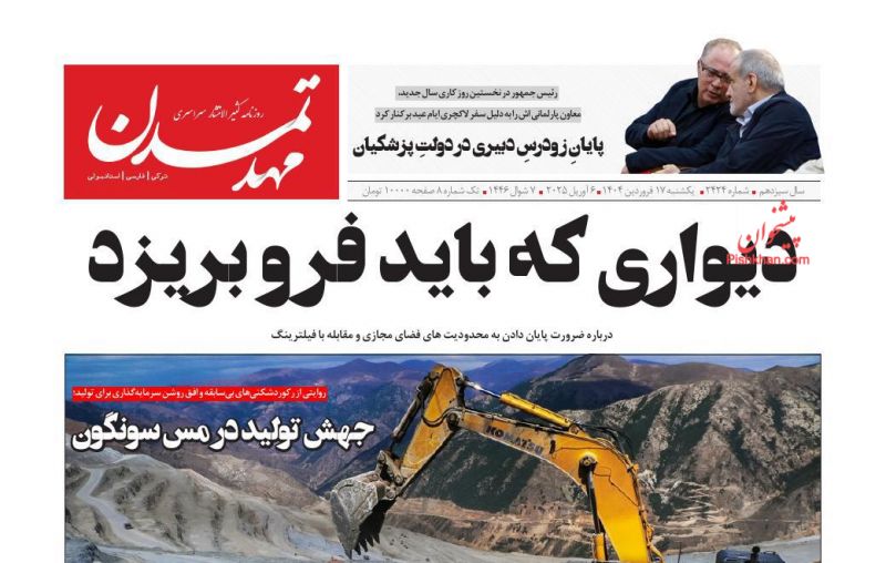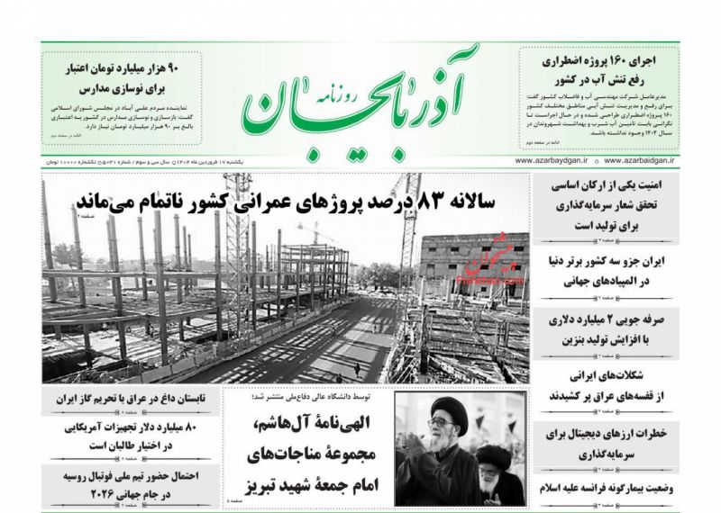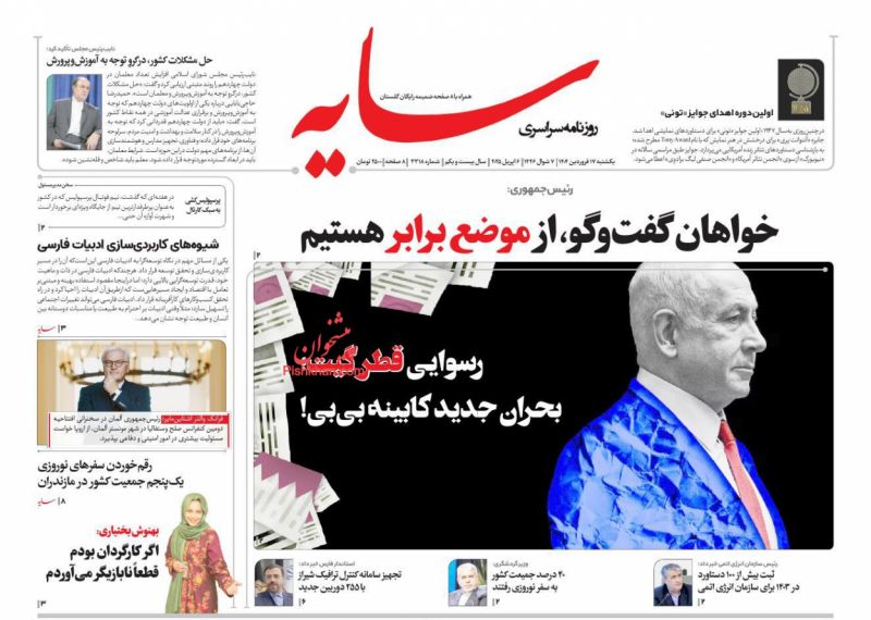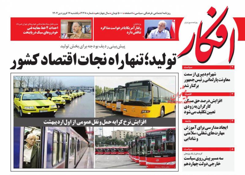 عصر ایرانیان ، پنجشنبه ۲۶ اسفند