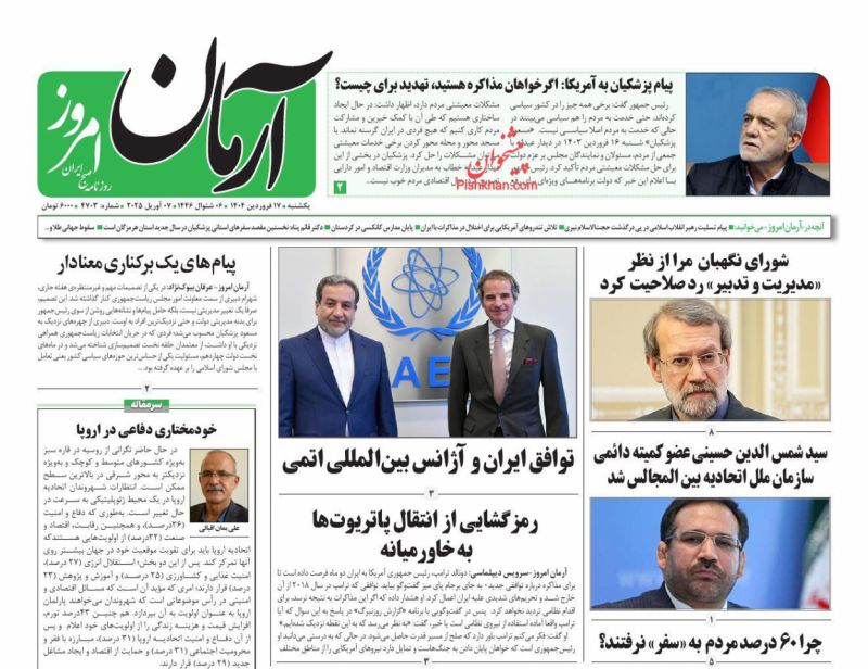 آرمان امروز ، شنبه ۲۸ اسفند