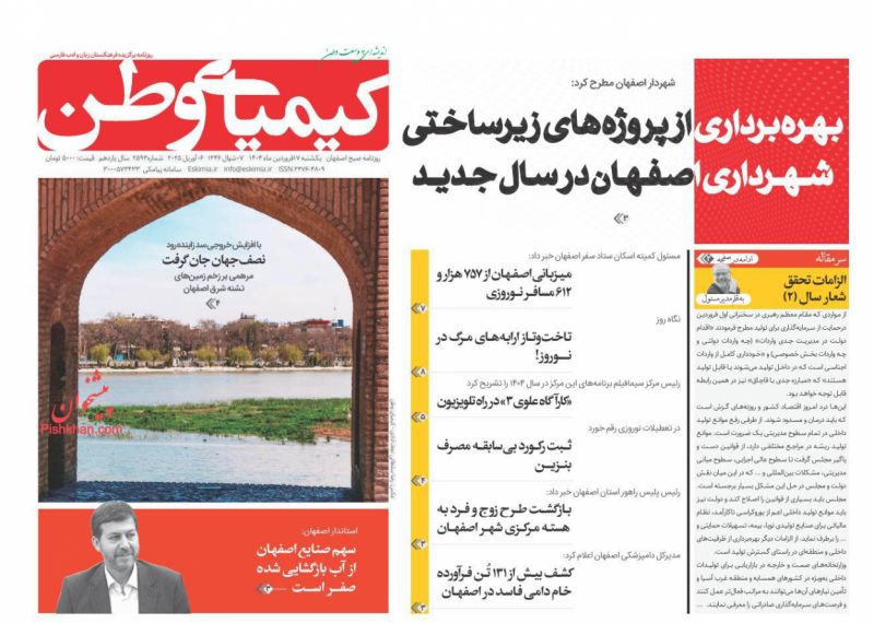 همشهری ، چهارشنبه ۲۵ اسفند