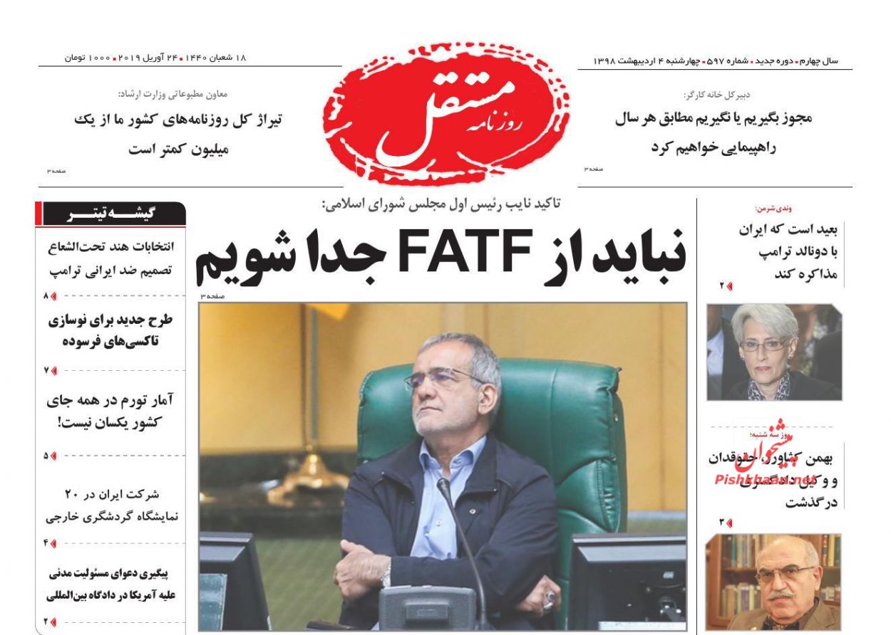 مستقل ، چهارشنبه ۴ ارديبهشت