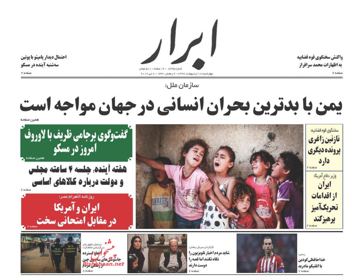 ابرار ، چهارشنبه ۱۸ ارديبهشت