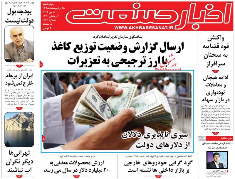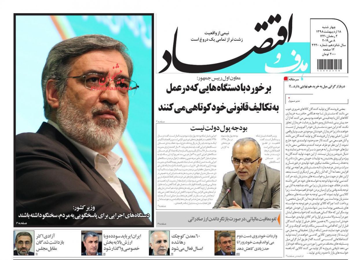 ابرار اقتصادی ، چهارشنبه ۱۸ ارديبهشت
