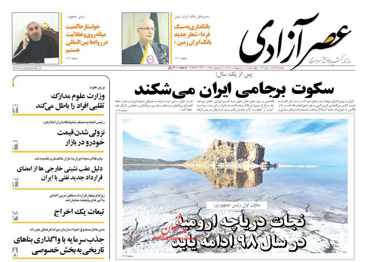 عصرآزادی ، چهارشنبه ۱۸ ارديبهشت