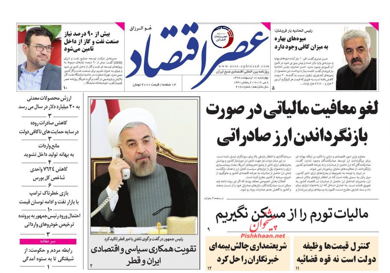 عصر اقتصاد ، چهارشنبه ۱۸ ارديبهشت