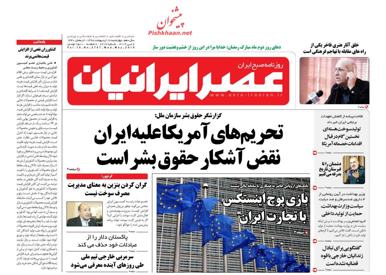 عصر ایرانیان ، چهارشنبه ۱۸ ارديبهشت