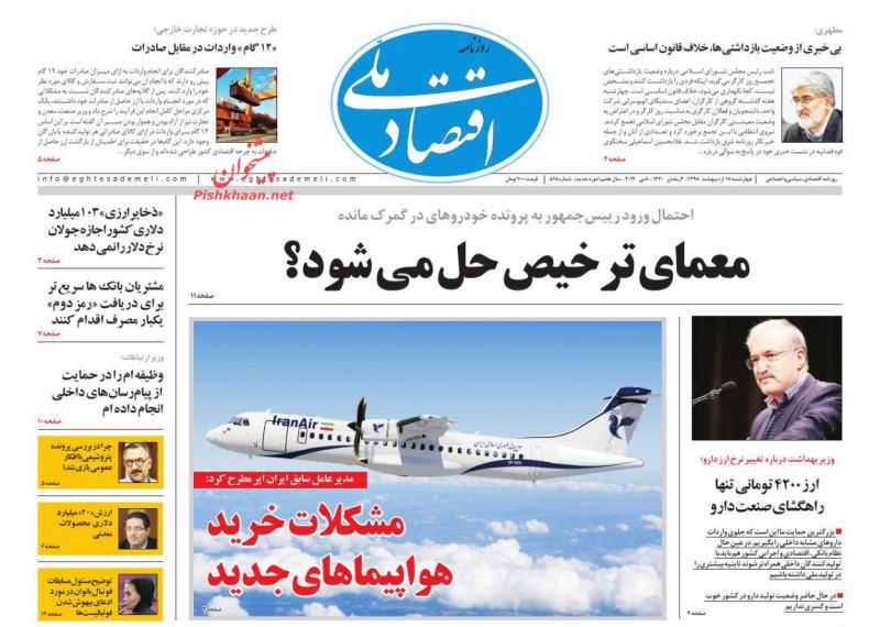 اقتصاد ملی ، چهارشنبه ۱۸ ارديبهشت