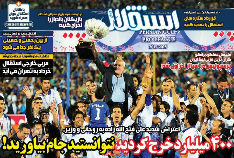 استقلال جوان ، چهارشنبه ۱۸ ارديبهشت