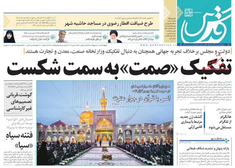قدس ، چهارشنبه ۱۸ ارديبهشت