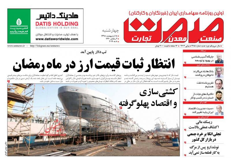 تجارت ، چهارشنبه ۱۸ ارديبهشت