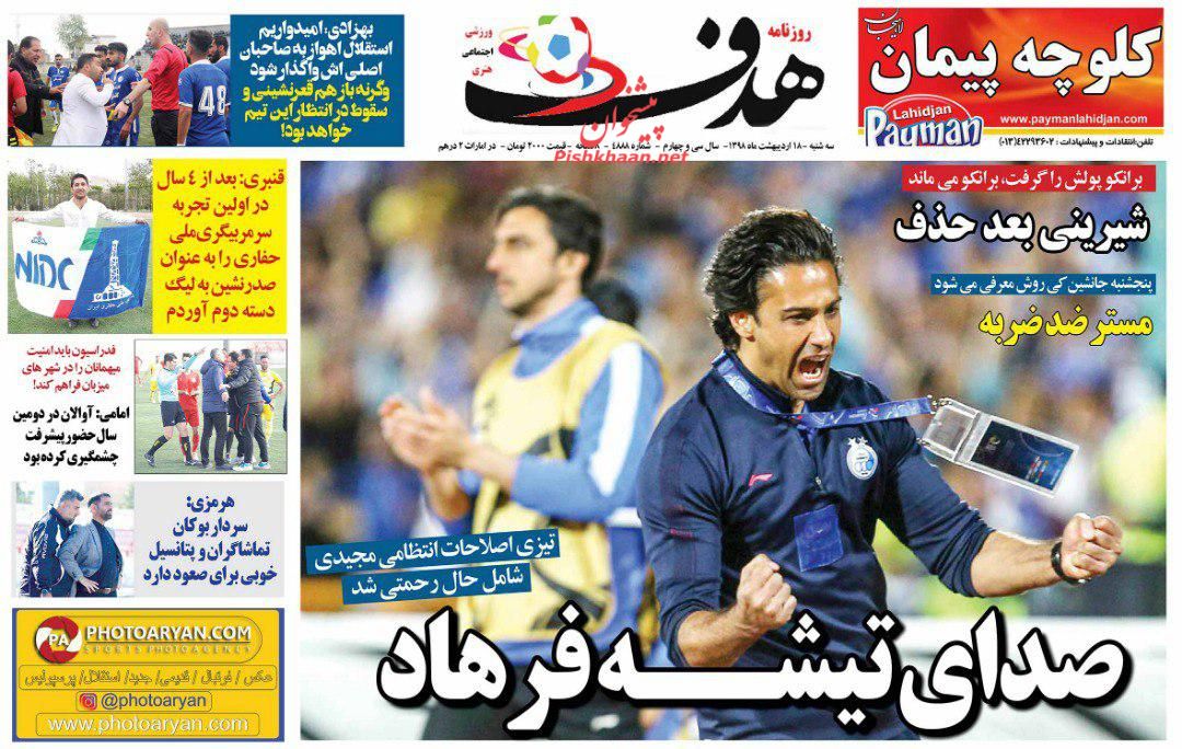 هدف ، چهارشنبه ۱۸ ارديبهشت
