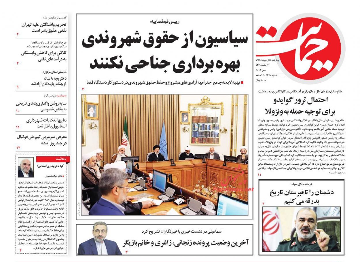 جمهوری اسلامی ، چهارشنبه ۱۸ ارديبهشت