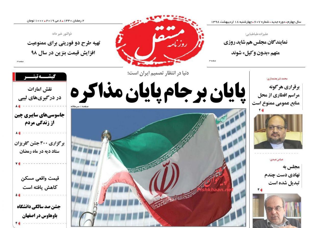 مستقل ، چهارشنبه ۱۸ ارديبهشت