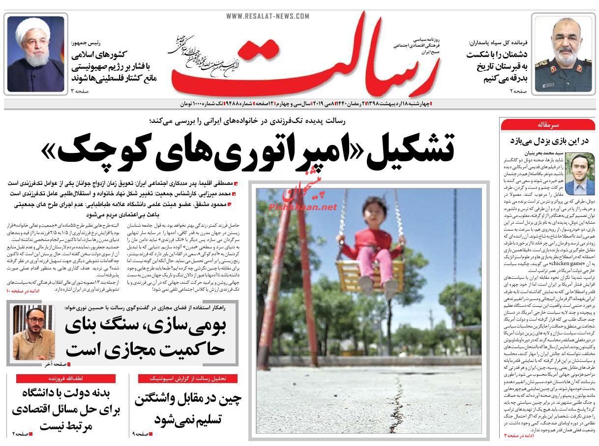 رسالت ، چهارشنبه ۱۸ ارديبهشت