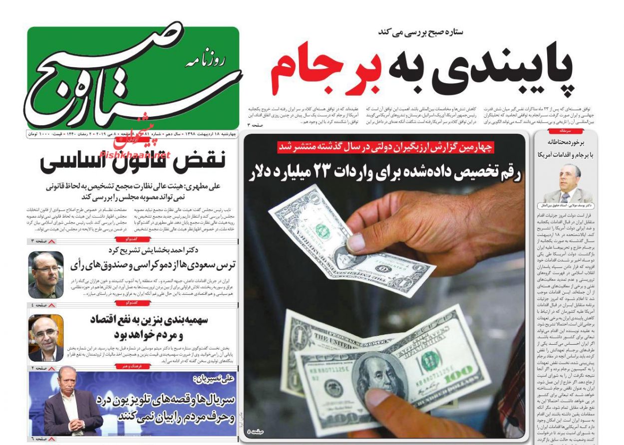 صدای اصلاحات ، چهارشنبه ۱۸ ارديبهشت