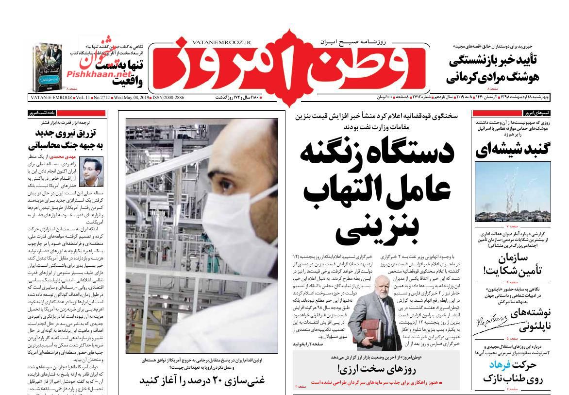 وطن امروز ، چهارشنبه ۱۸ ارديبهشت