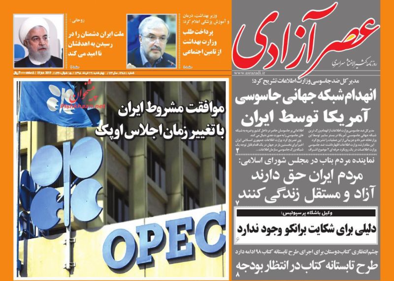 عصرآزادی ، چهارشنبه ۲۹ خرداد