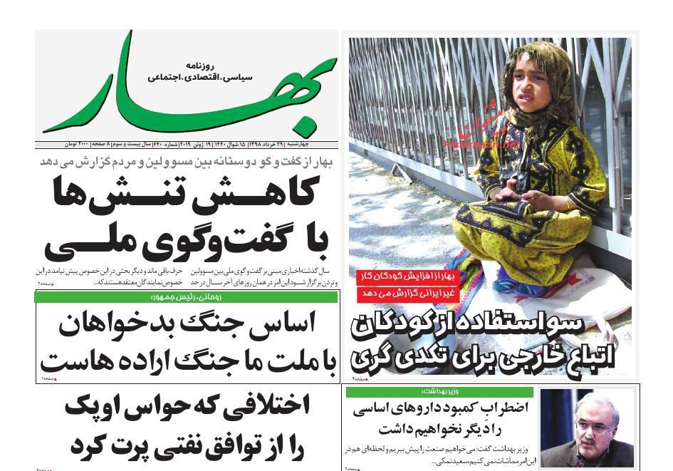 ابتکار ، پنجشنبه ۳۰ خرداد