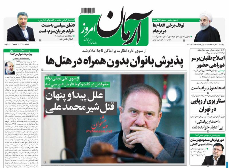 آرمان امروز ، پنجشنبه ۳۰ خرداد