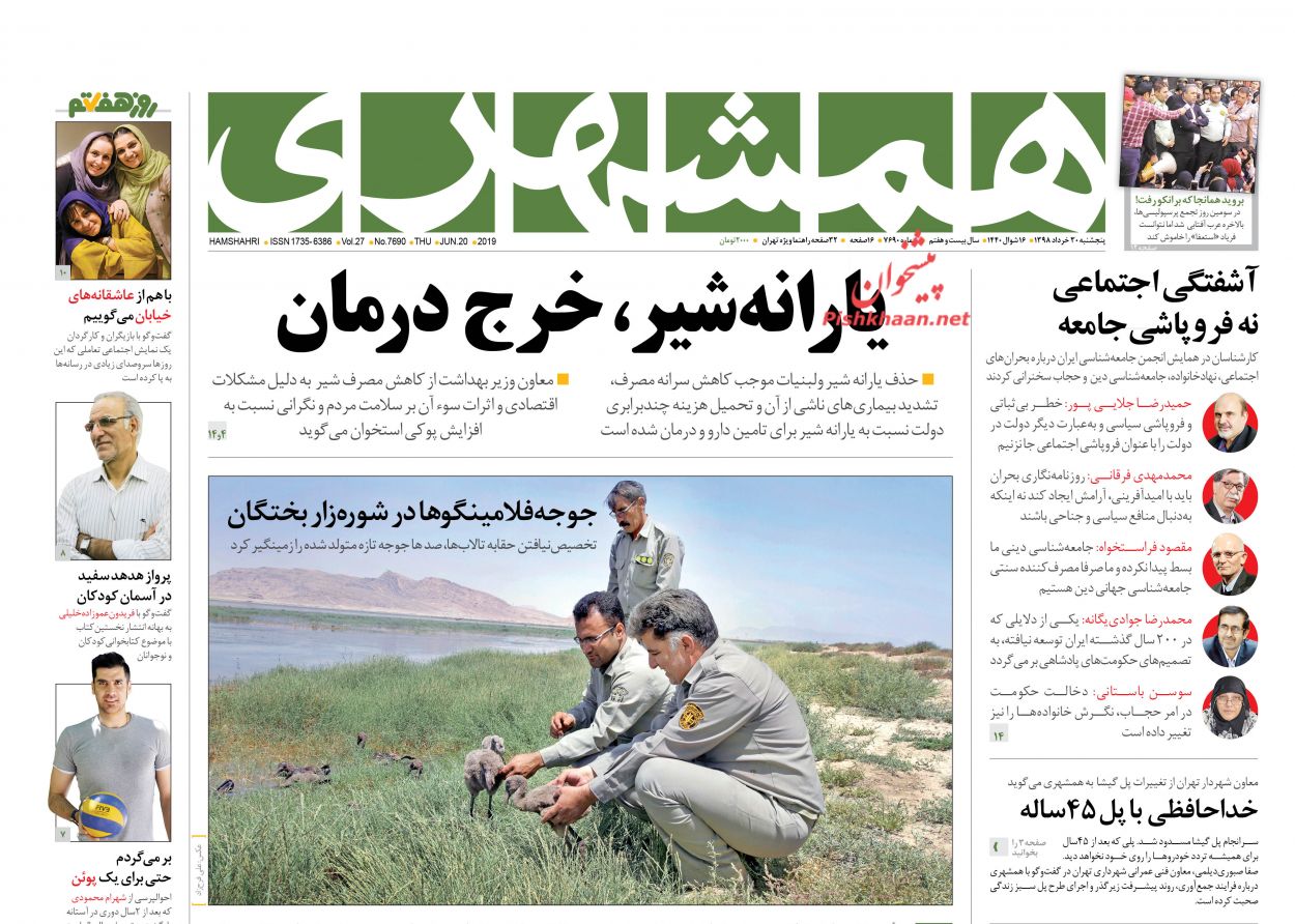 عصر ایرانیان ، پنجشنبه ۳۰ خرداد