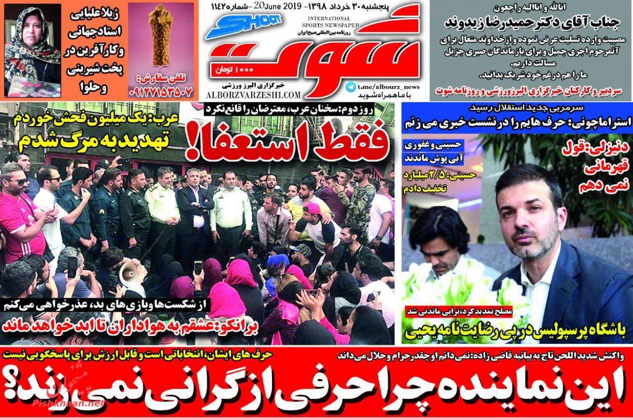 ایران ورزشی ، پنجشنبه ۳۰ خرداد